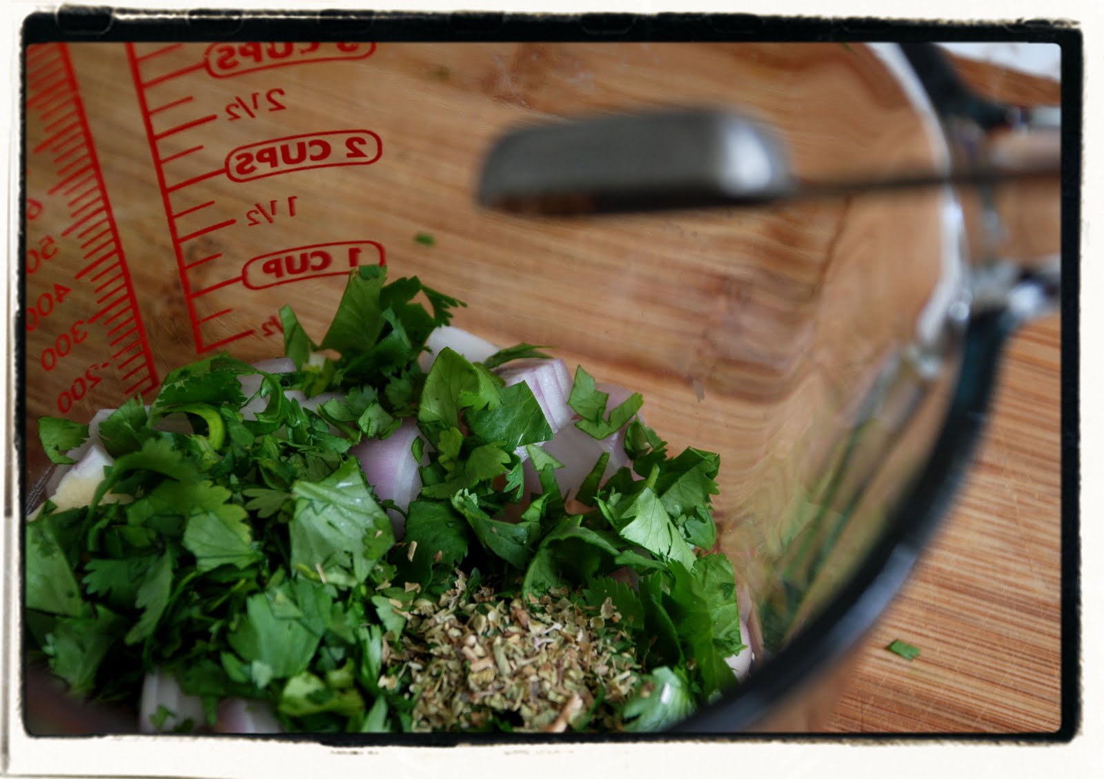 Next comes the cilantro. No need to pull the leaves from the stems... it's all going to whir together nicely. And there is so much flavor in those tender stems.